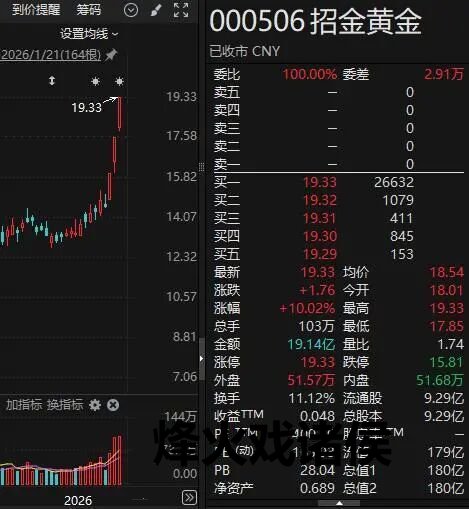 市场热点方面,贵金属概念全天保持强势,板块指数早盘大幅高开,午后继续放量拉升,盘中一度飙升近9%,创历史新高,成交也刷新历史纪录。板块内所有个股上涨,招金黄金午后封死涨停,连续第3日涨停,四川黄金亦在午后涨停,走出5日3个涨停,湖南白银、西部黄金等纷纷强势封板。